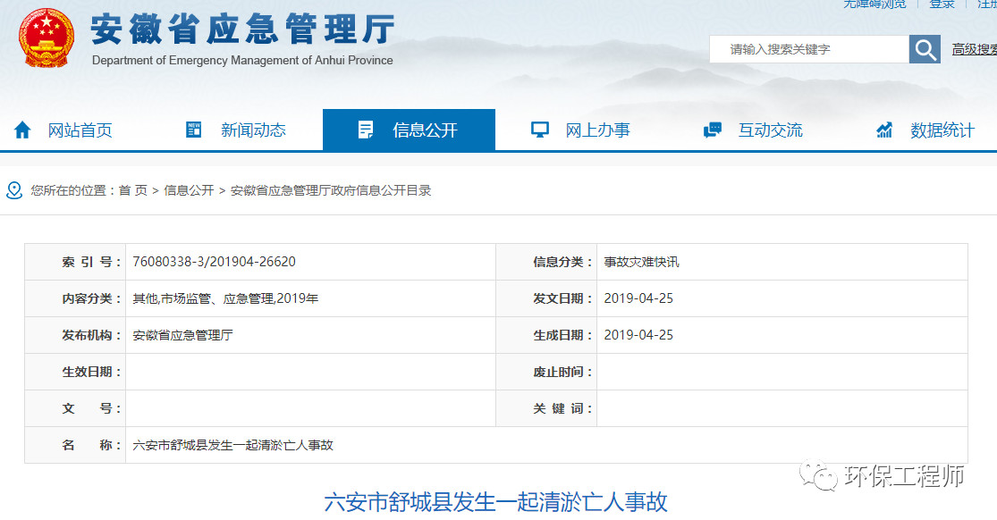 3人死亡!安徽发生一起污水处理调节池清淤中毒事故!